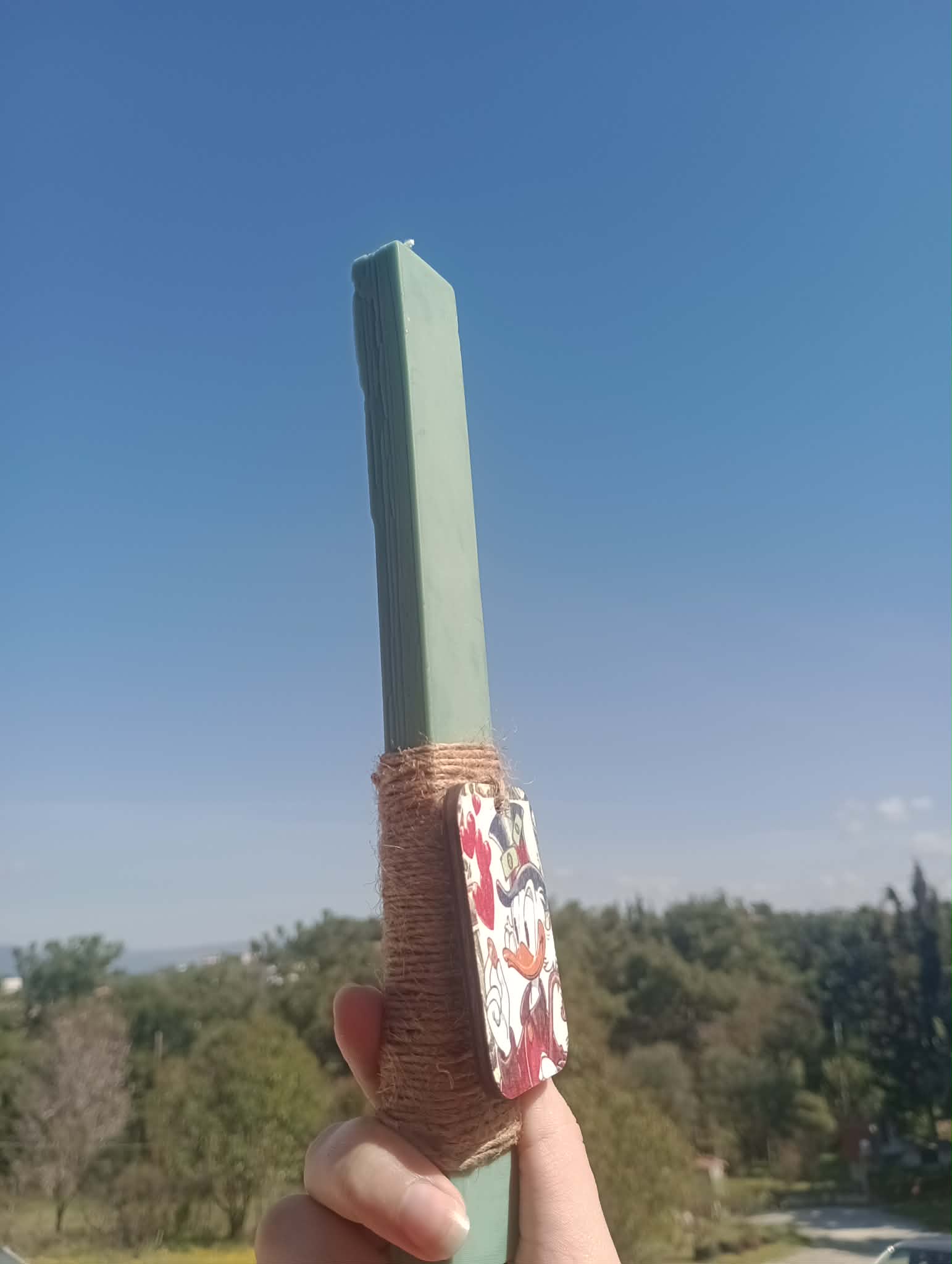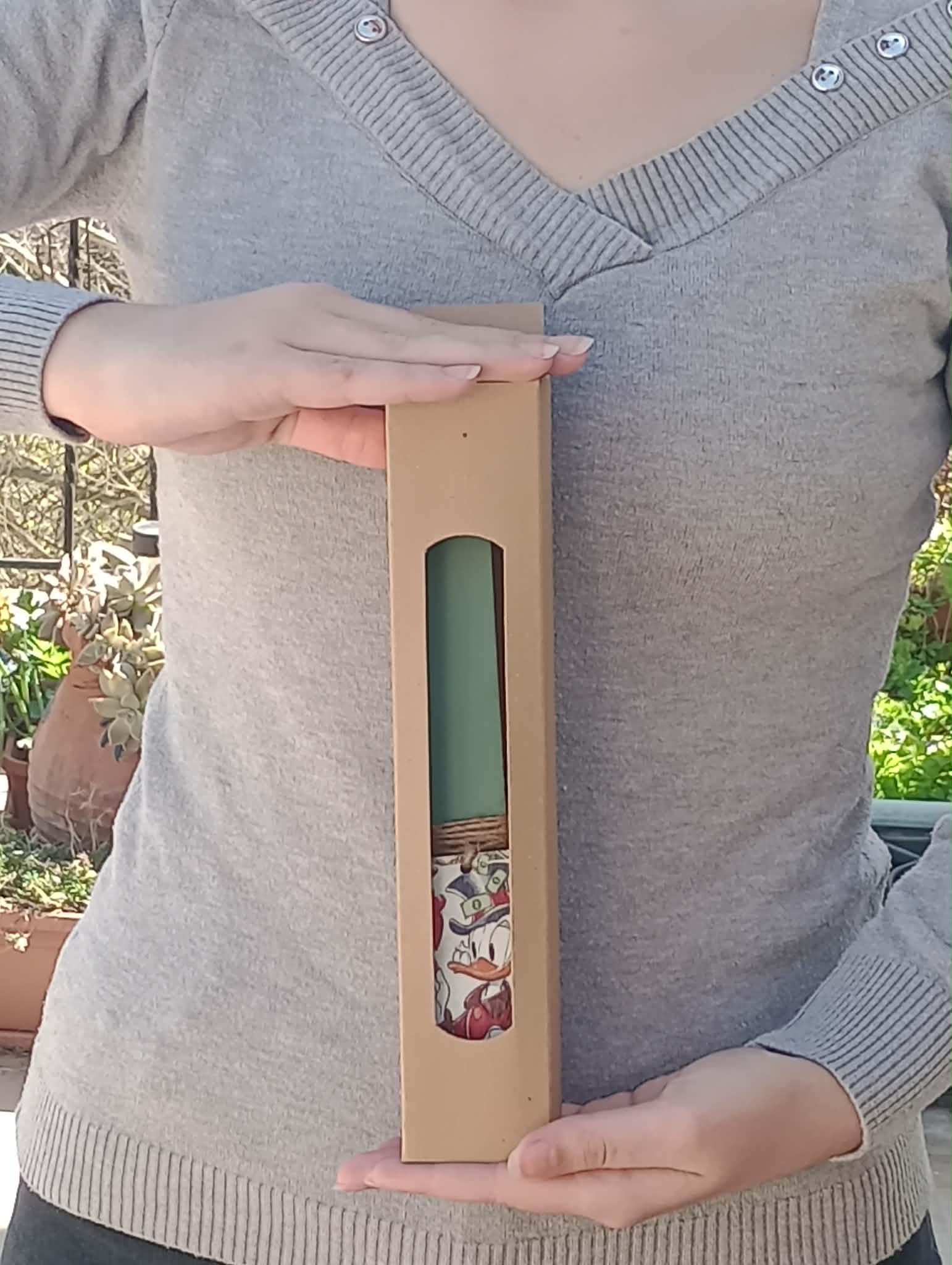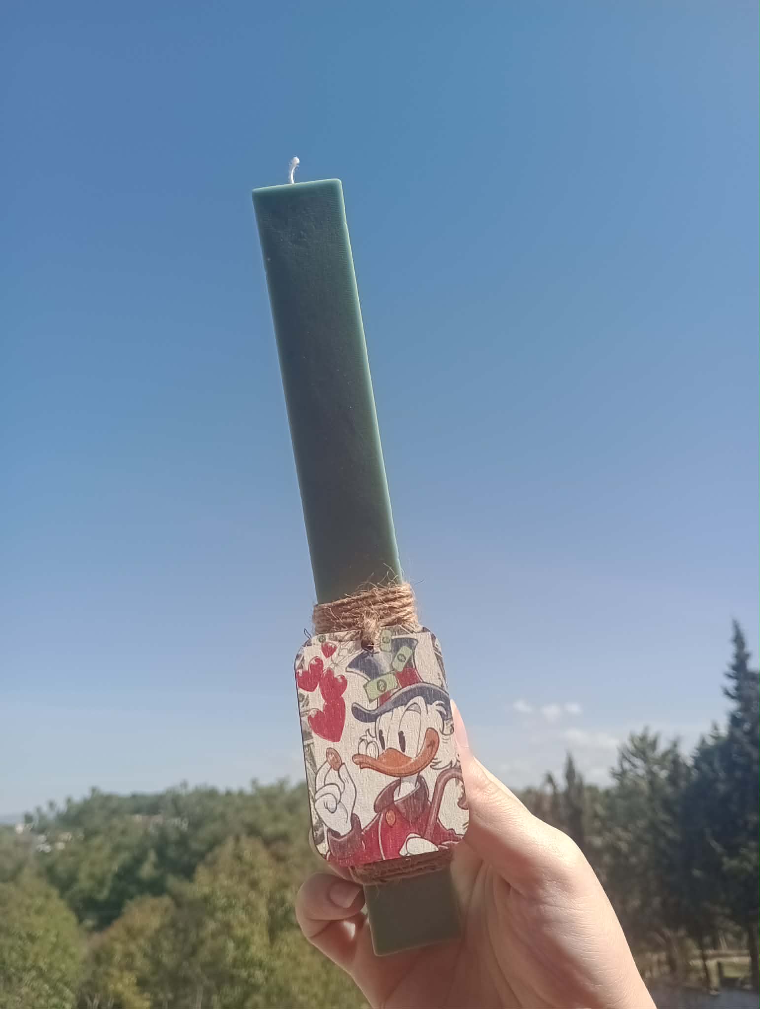 Χαρίστε στο βαφτιστήρι σας, τους φίλους ή τους συγγενείς σας μια μοναδική και χαρούμενη πασχαλινή λαμπάδα που συνδυάζει στυλ, άρωμα και αγαπημένους χαρακτήρες της παιδικής μας ηλικίας. Η χειροποίητη αυτή πασχαλινή λαμπάδα ξεχωρίζει για τον μοντέρνο σχεδιασμό της και το ιδιαίτερο ξύλινο διακοσμητικό στοιχείο με τον αγαπημένο Σκρούτζ Μακ Ντακ, που προσθέτει μια πιο παιχνιδιάρικη διάθεση και κάνει το δώρο ακόμα πιο ξεχωριστό.