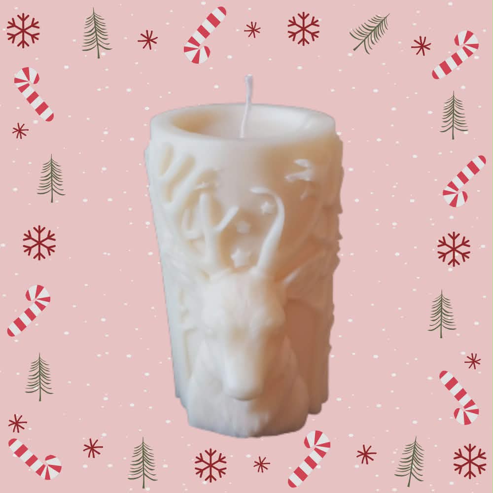 Το κερί είναι κατασκευασμένο από 100% φυτικό κερί ελαιοκράμβης, μια πιο φυσική και φιλική προς το περιβάλλον επιλογή, που καίγεται καθαρά και ομοιόμορφα, χωρίς να παράγει έντονους καπνούς. Το σώμα του κεριού είναι διακοσμημένο με ανάγλυφα χριστουγεννιάτικα μοτίβα και μια άκρως εντυπωσιακή παράσταση τάρανδου, γνωστό σύμβολο των γιορτών, που προσδίδει μοναδικό χαρακτήρα και το καθιστά ιδανικό τόσο ως διακοσμητικό στοιχείο στο χώρο σας όσο και ως κερί καύσης.